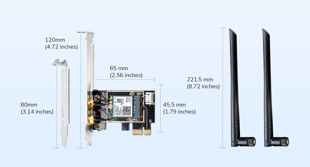 Suitable for both standard tower PCs and low-profile HTPC builds. Install the antennas and position them vertically facing your router for the optimal signal quality.