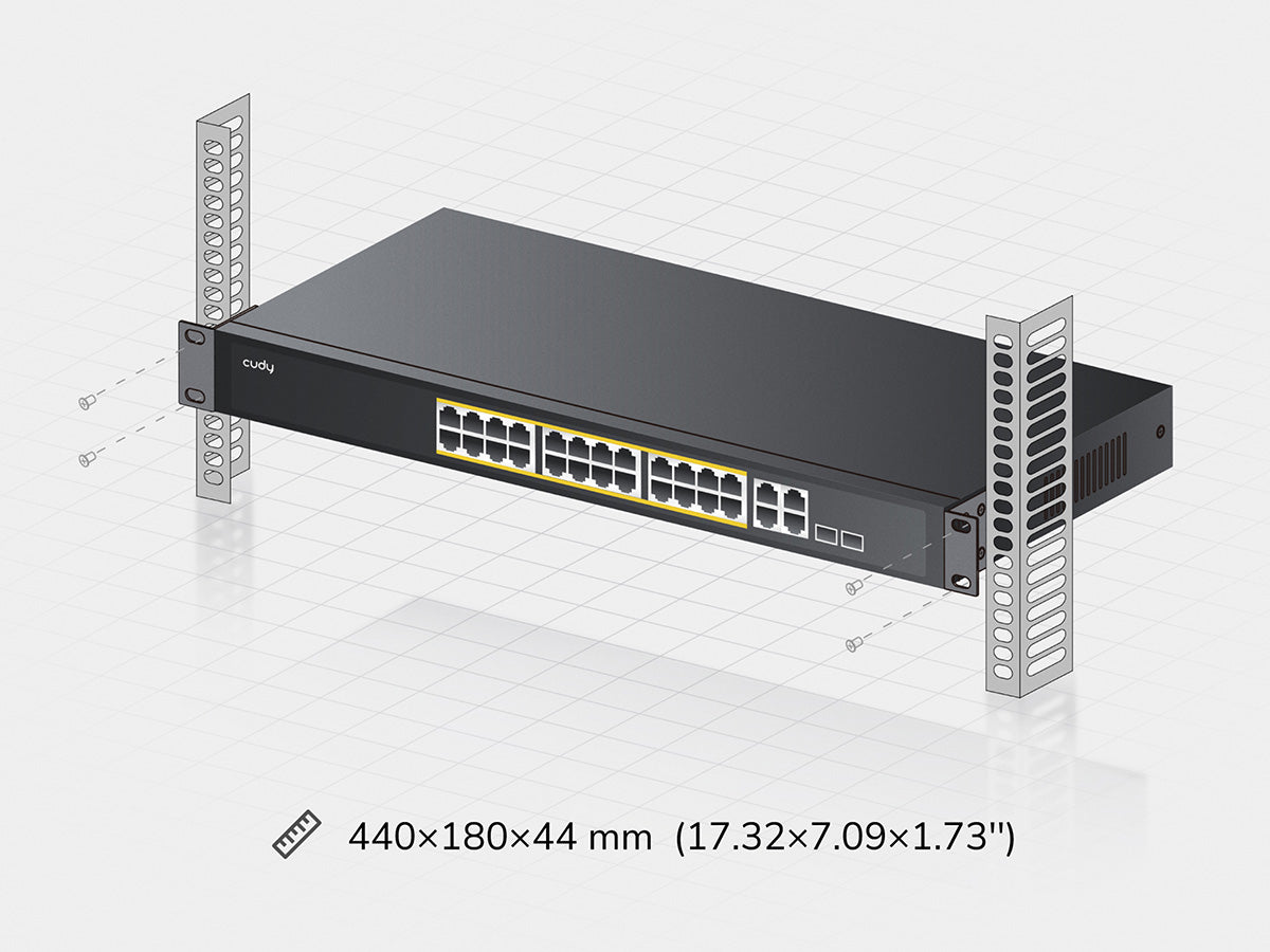 - 24-FE PoE, 2-GbE, 1-SFP