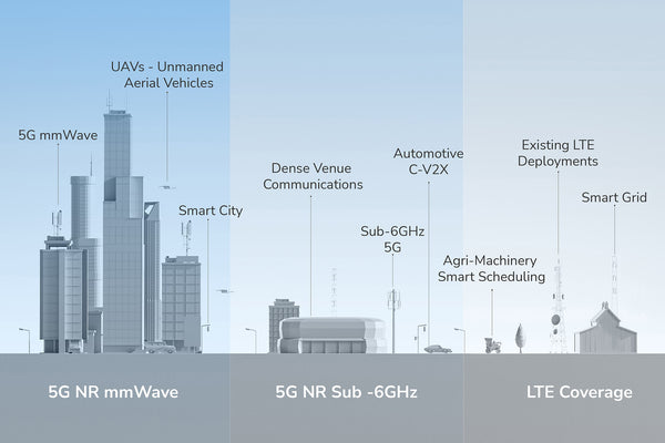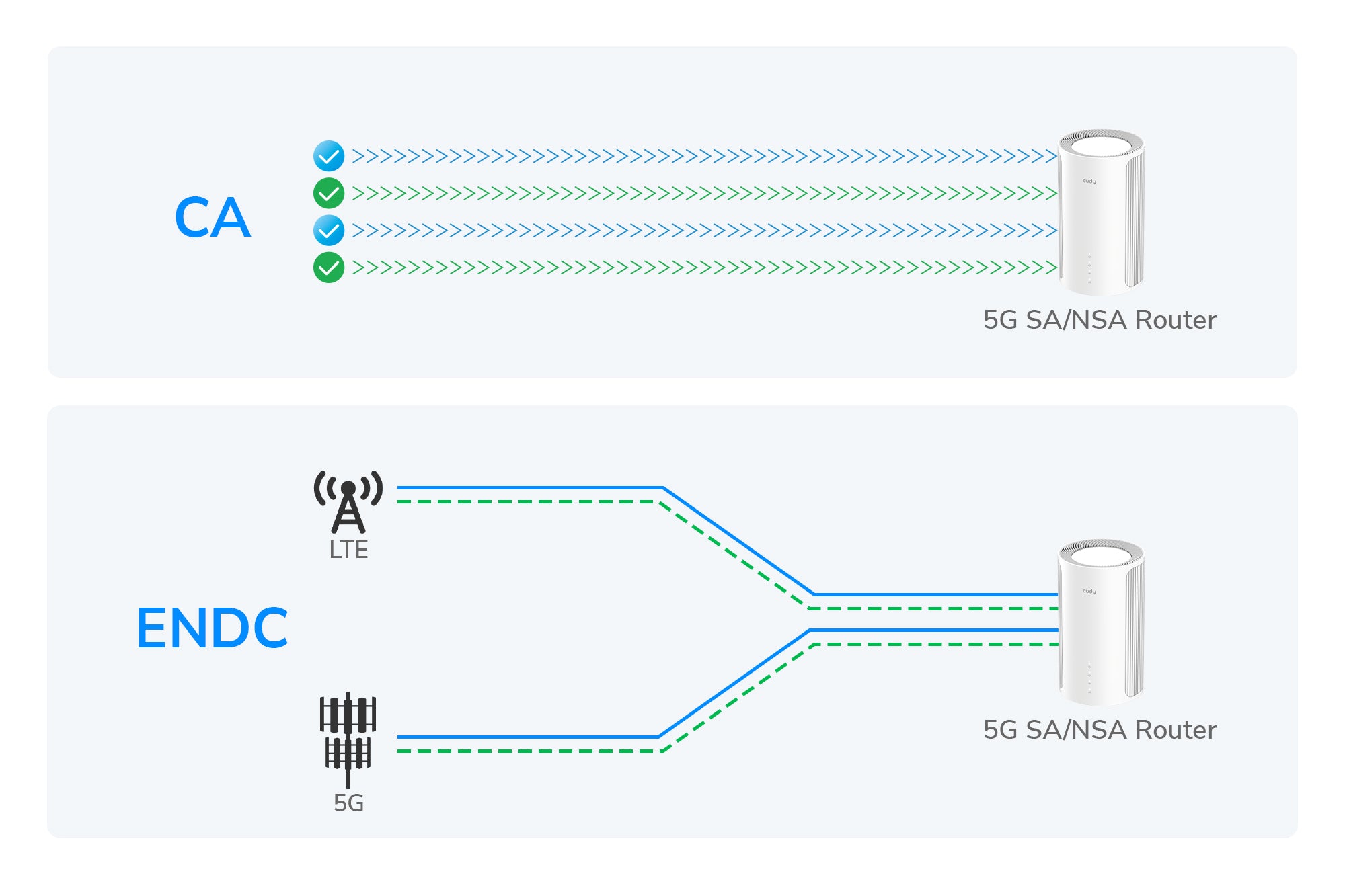 Carrier Aggregation (CA) and E-UTRAN New Radio Dual Connectivity (EN-DC) deliver higher throughput and better spectrum efficiency, maximizing performance across 4G and 5G bands.