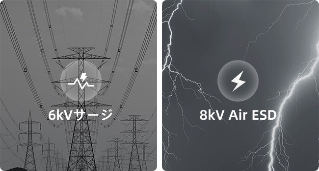 IEC/EN 61000-4-2, Level 3 ESD: Contact: 6kV; Air: 8kV IEC/EN 61000-4-5, Level X Surge: RJ45: CM 6kV |