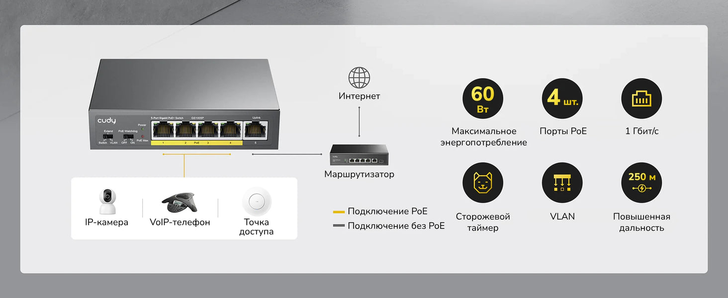 | Коммутация | Управление PoE | Умное распределение питания |