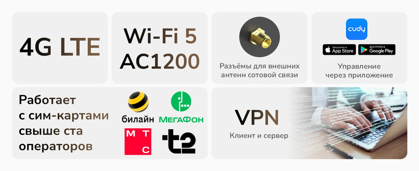 | Mesh | Можно использовать в качестве основного устройства для создания Mesh-сети с другими Mesh-устройствами Cudy | |