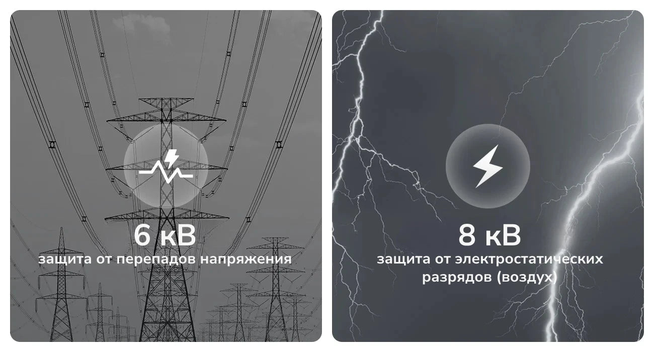 IEC 61000-4-2: устойчивость к электростатическим разрядам 3-го уровня (контакт: 6 кВ‚ воздух: 8 кВ) IEC 61000-4-5: устойчивость к перепадам напряжения уровня X (порт RJ45: синфазное напряжение 6 кВ) |