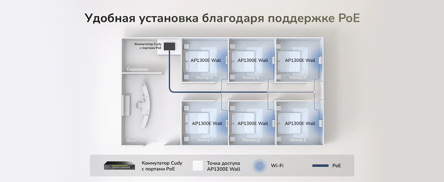 - Фактическая скорость передачи данных по Wi-Fi может отличаться от заявленной и зависит от параметров сети, ограничений клиентских устройств, а также внешних факторов, таких как планировка помещения, наличие физических преград и местоположение клиентских устройств.