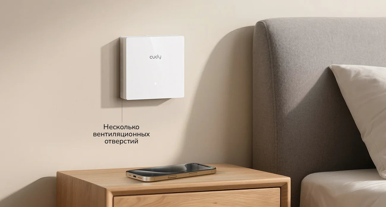- Фактическая площадь покрытия сети Wi-Fi может отличаться от заявленной и зависит от внешних факторов, таких как планировка помещения, наличие физических преград, объём и плотность трафика, а также местоположение клиентских устройств. Для наиболее оптимального покрытия рекомендуется размещать устройство посередине зоны, в которой планируется пользоваться сетью Wi-Fi.