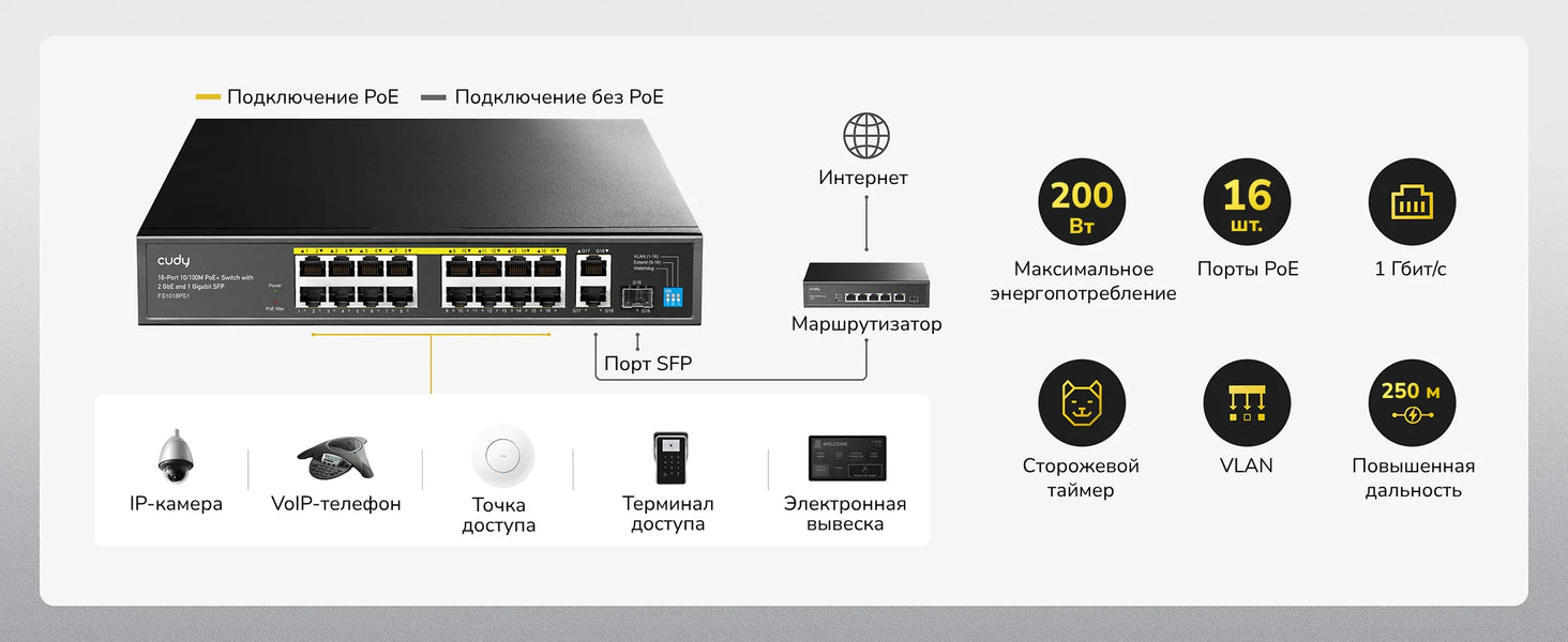 | Коммутация | Управление PoE | Умное распределение питания |