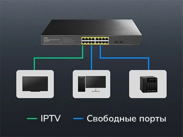 | Функции 2-го уровня | Отслеживание сетевого трафика IGMP‚ защита от образования петель‚ DHCP snooping‚ STP/RSTP‚ настройка LLDP и отображение информации о подключённых устройствах по LLDP‚ VLAN (на основе MTU‚ на основе портов‚ на основе стандарта 802.1Q‚ голосовой)‚ приоритизация (DSCP‚ 802.1p‚ на основе портов) | |