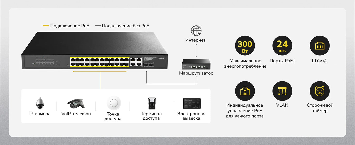 | Приоритет PoE | Можно настроить. Если приоритет не задан‚ то чем ниже номер порта‚ тем выше приоритет. | |