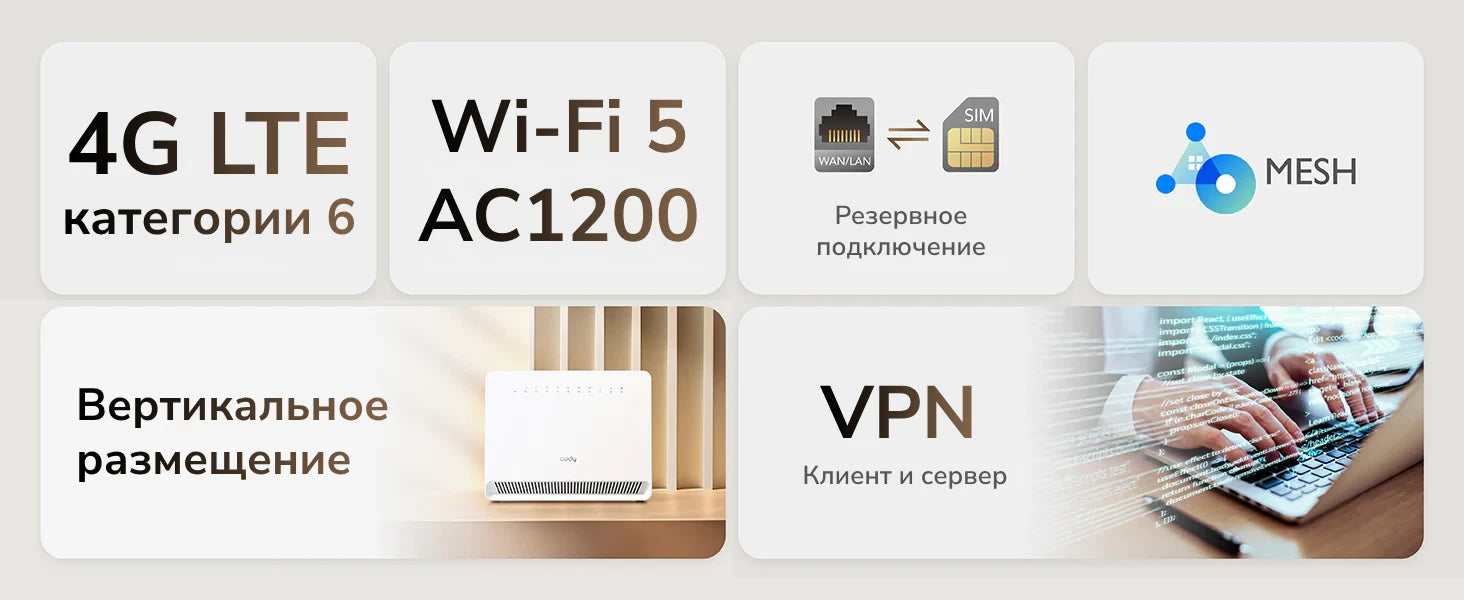 | Mesh | Можно использовать в качестве основного устройства для создания Mesh-сети с другими Mesh-устройствами Cudy | |
