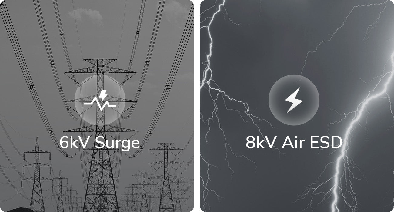 IEC 61000-4-2: устойчивость к электростатическим разрядам 3-го уровня (контакт: 6 кВ‚ воздух: 8 кВ) IEC 61000-4-5: устойчивость к перепадам напряжения уровня X (порт RJ45: синфазное напряжение 6 кВ) |