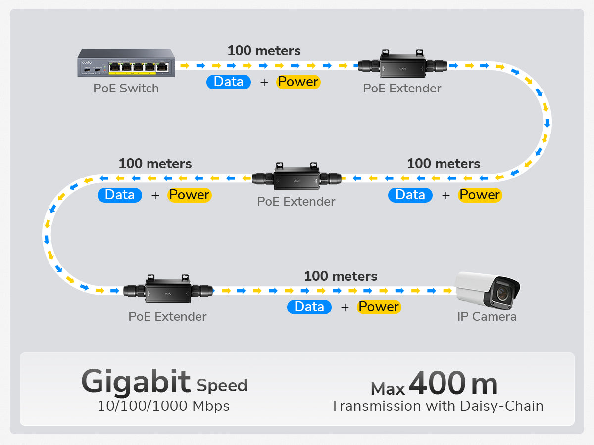 - Указанное расстояние — это протяжённость кабеля от выходного гигабитного порта устройства Cudy до клиентского устройства. Максимальная протяжённость кабеля между коммутатором Uplink и входным гигабитным портом устройства Cudy зависит от возможностей коммутатора Uplink.
