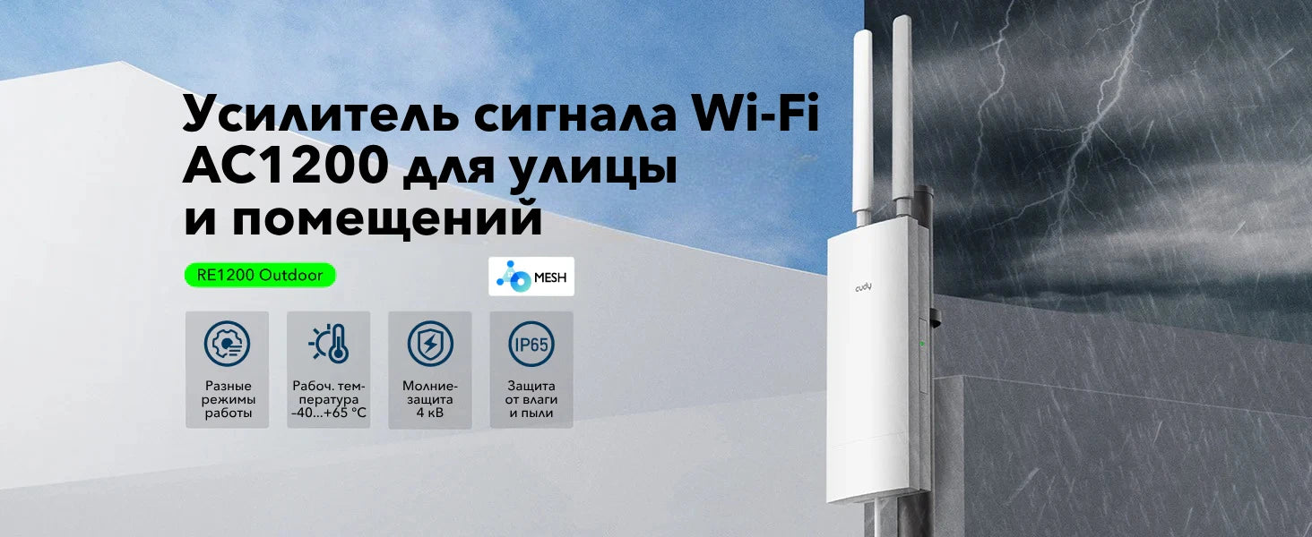 Усилитель сигнала Wi-Fi AC1200 для улицы и помещений, RE1200 Outdoor 1.0