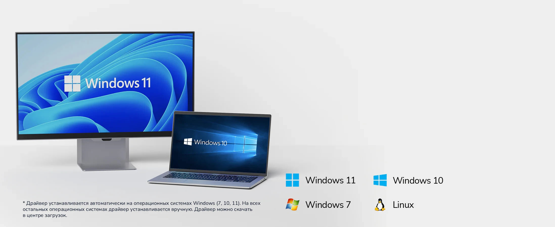 Автоматическая установка на Windows (7‚ 10‚ 11). Если используется другая операционная система‚ драйверы нужно устанавливать вручную. |