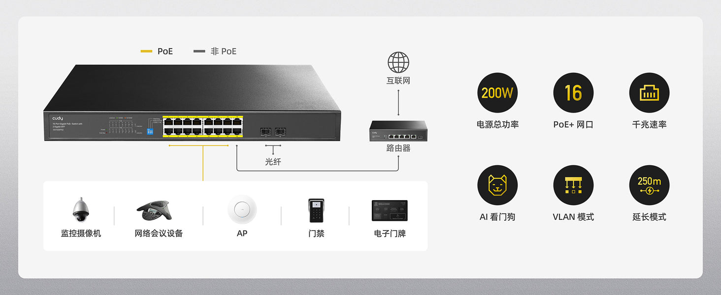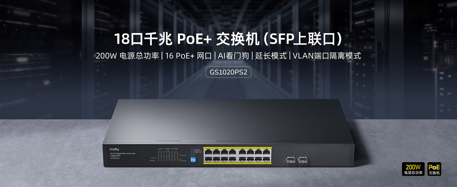- 16-GbE PoE,2-SFP,轻管理