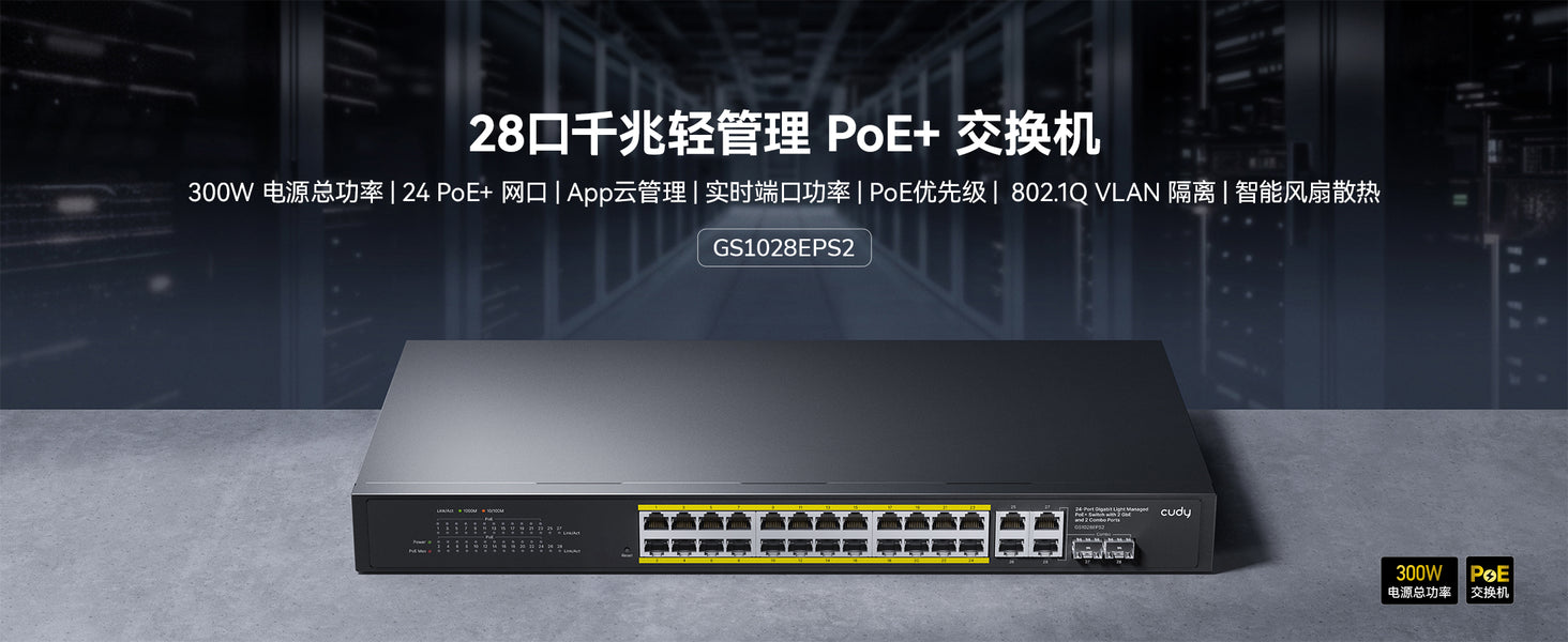 - 24-GbE PoE,2-GbE,2-Combo,轻管理