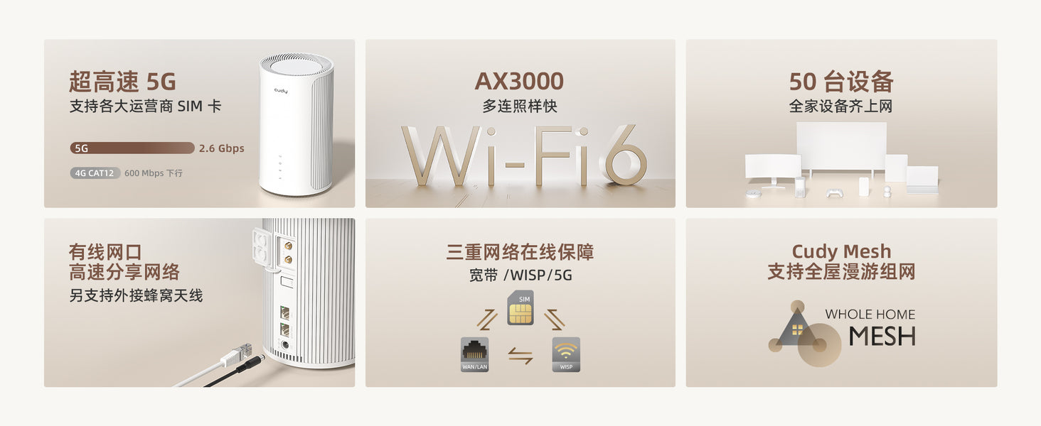 | 蜂窝网络特性 | 5G+4G Dual Connectivity, DL 4×4, UL 2×2 MIMO | |