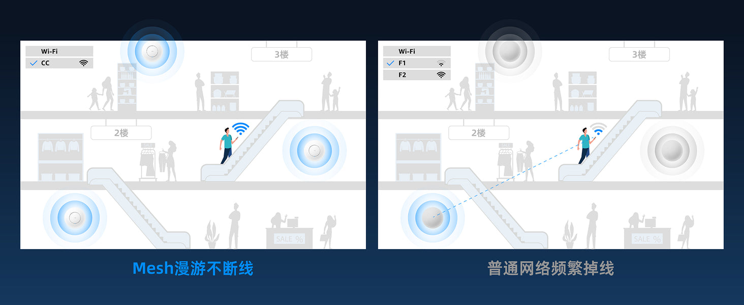 兩堵 非承重牆體,每堵厚度 < 10cm 一堵 混凝土牆體/層板,每堵厚度 < 20cm 建議安裝在需要 Wi-Fi 區域的中心區域以最大化覆蓋體驗 |