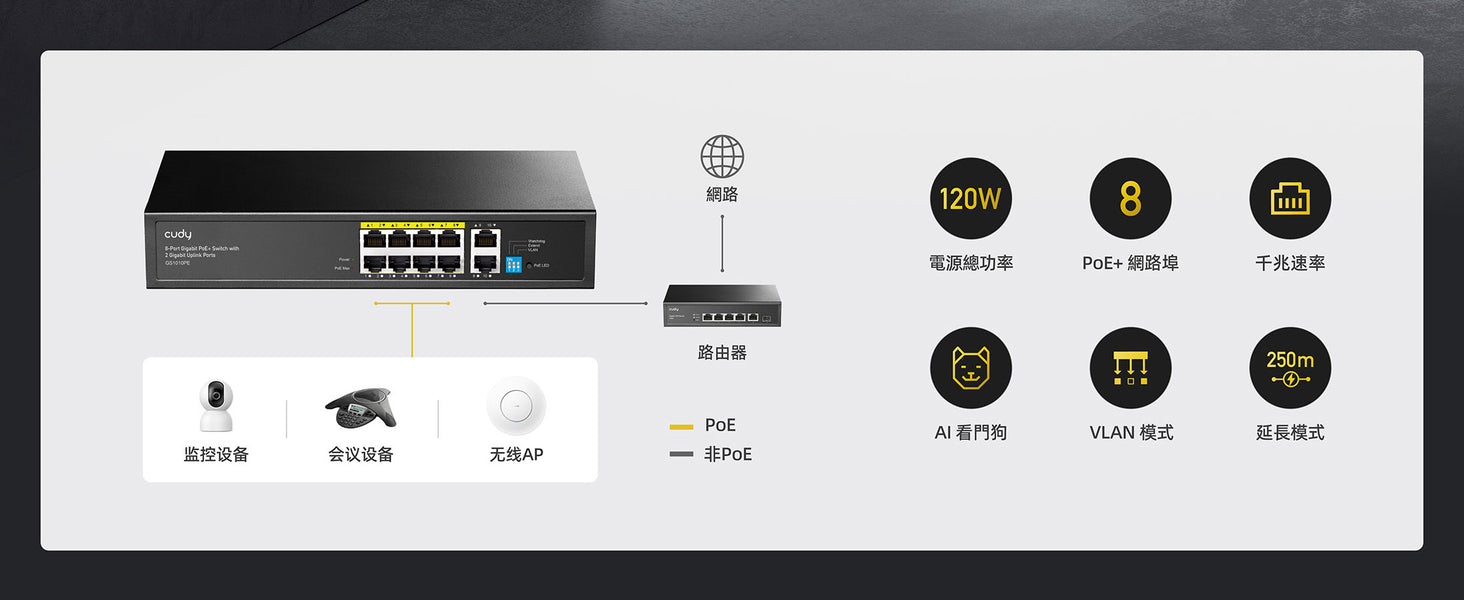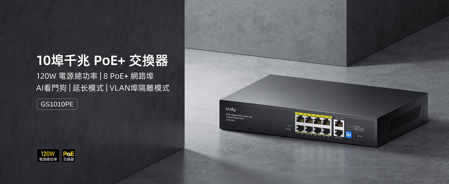 - 8 個 FE PoE,2 個 GbE