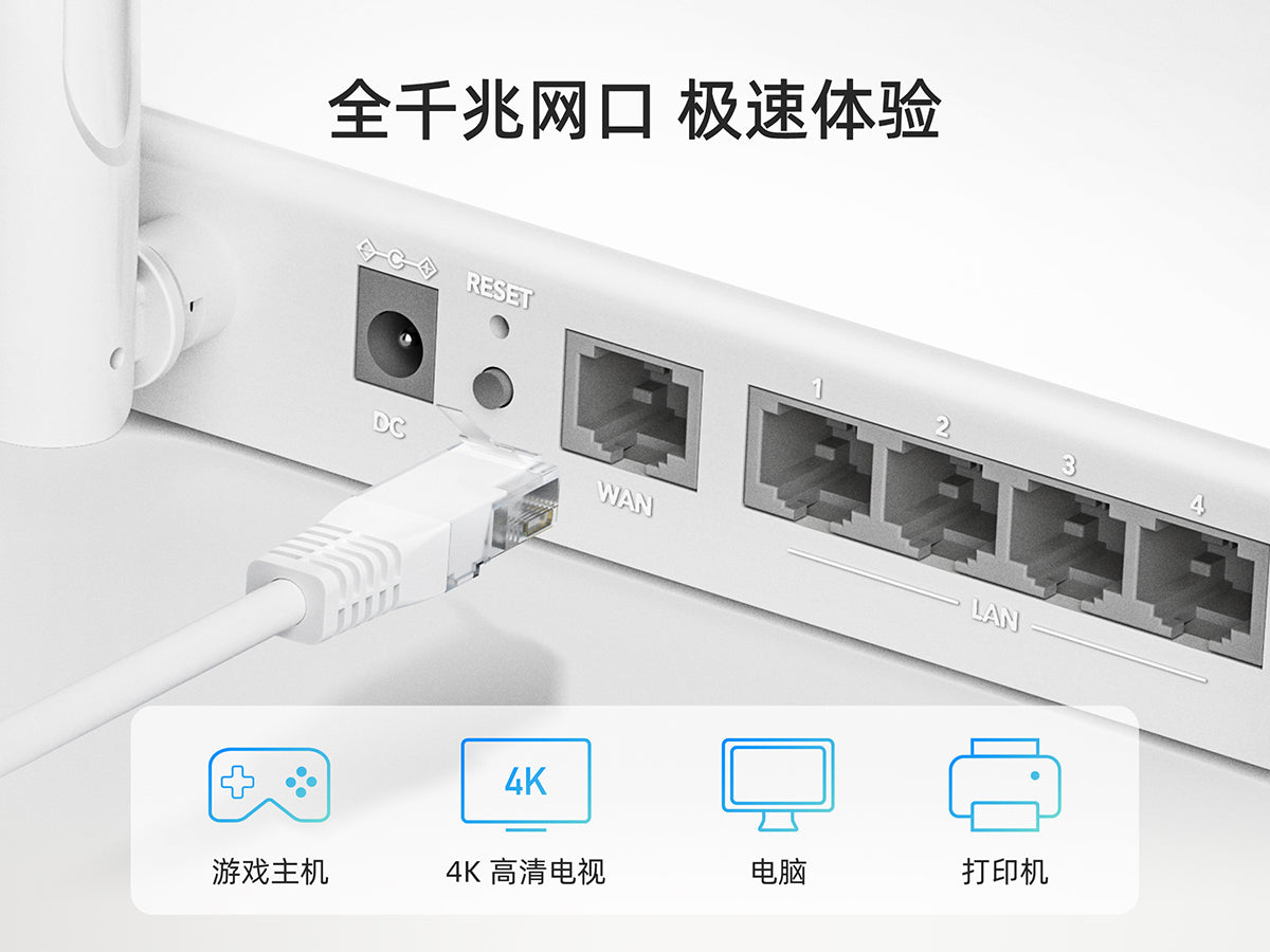 WR1300 配備1個千兆WAN口和3個千兆LAN口,支援高達千兆的寬頻接入,釋放運營商的全部實力,搭載強大的硬體設定,保障有線設備高速流暢的網路體驗。
